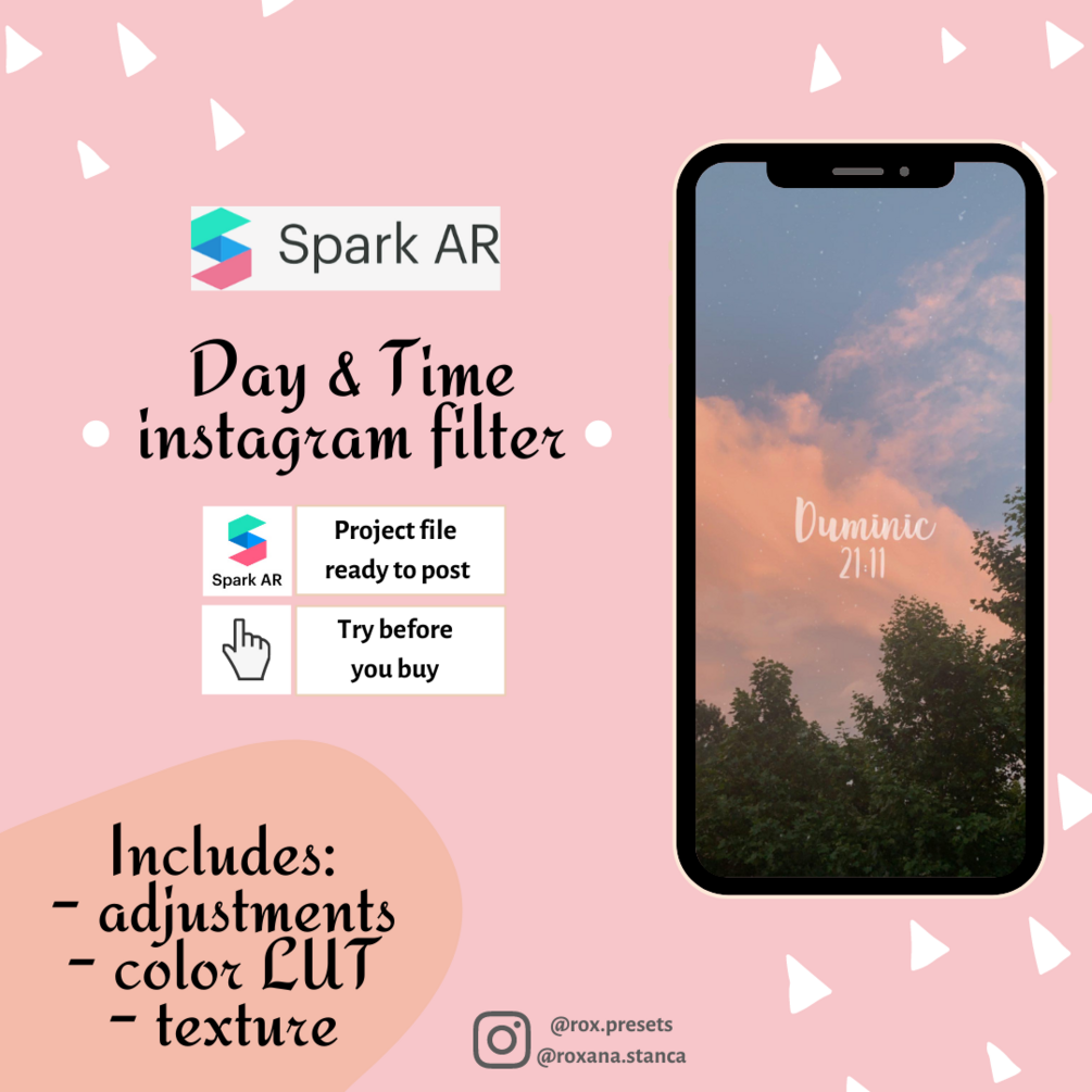 The day & time filter is made of Spark AR (free app) and is compatible with both iPhone and Android.